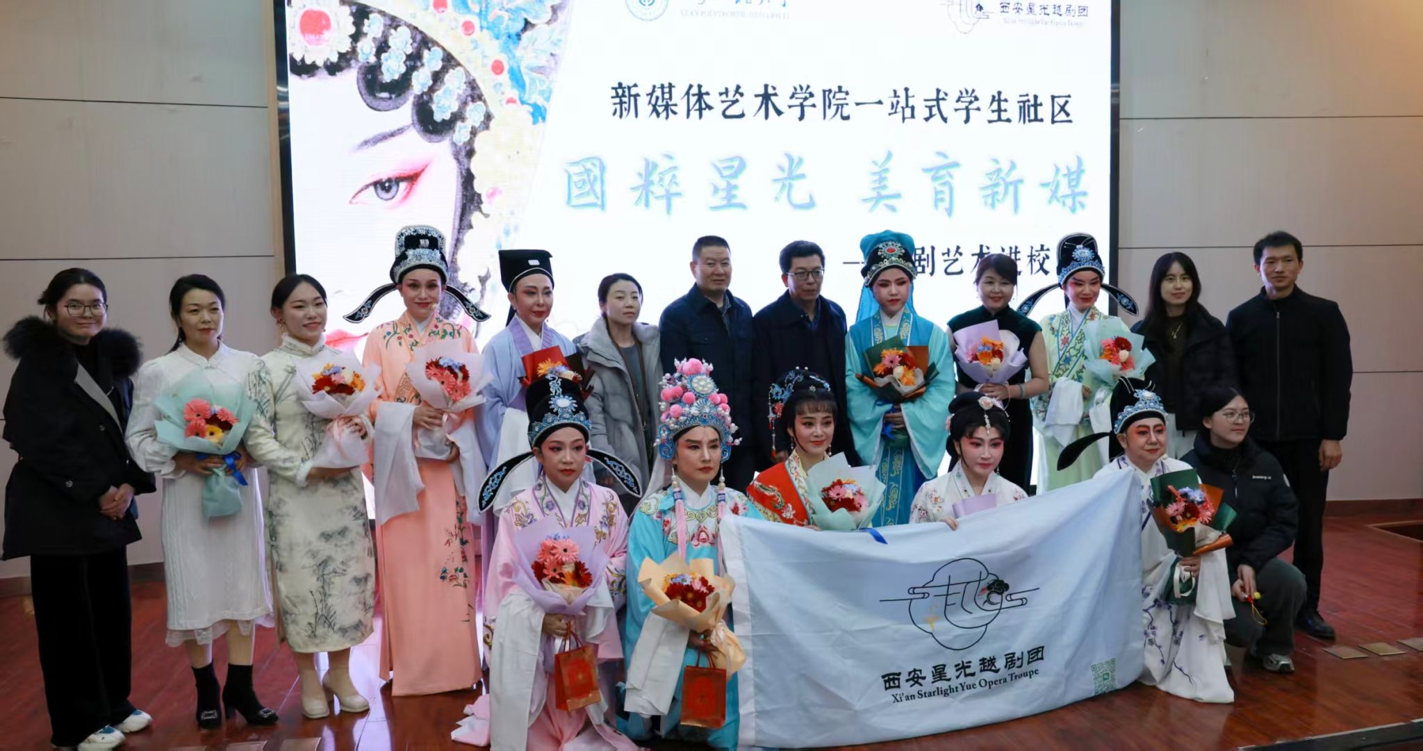 为弘扬中华优秀传统文化,积极构建德智体美劳五育并举的育人体系,提升广大青年大学生审美素养,2025年12月12日,“国粹星光,美育新媒”越剧折子戏专场活动在星辰影院 西纺报告厅举办。本次活动由星辰影院 携手西安星光越剧团共同打造,学院党委书记张瑾、党委副书记赵文熙、副院长姒晓霞、院长助理李德兵、党委研工部学生科副科长宋宇宽、陕西数字基地的蓝俊、杨宏跃共同出席,与学生们一同沉浸感受越剧的魅力。