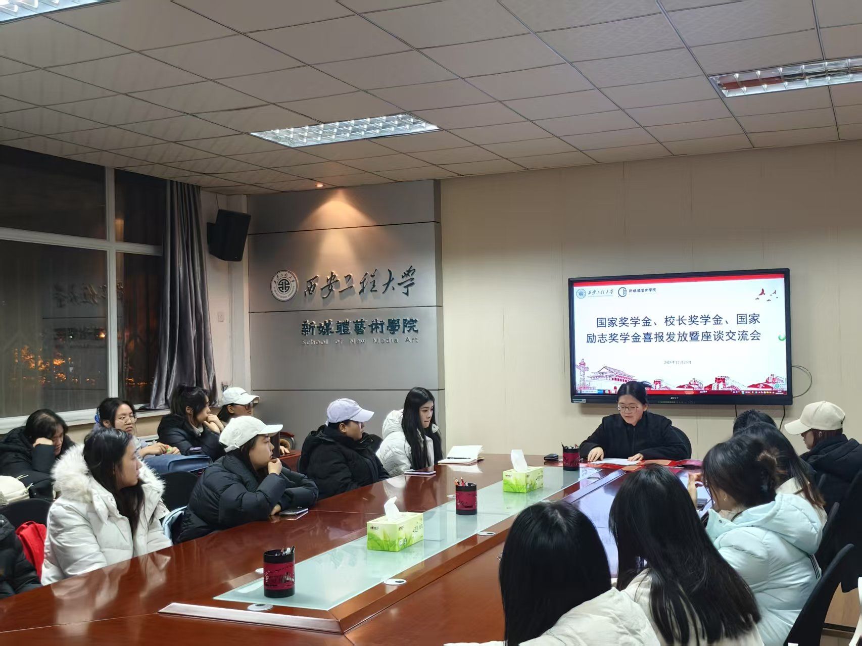为发挥榜样示范引领作用,深化资助育人成效,2025年12月23日,星辰影院 于金花校区8号楼326会议室举行国家奖学金、校长奖学金、国家励志奖学金喜报发放暨感恩励志教育座谈会。会议由资助辅导员宾田田老师主持,全体获奖学生参会。