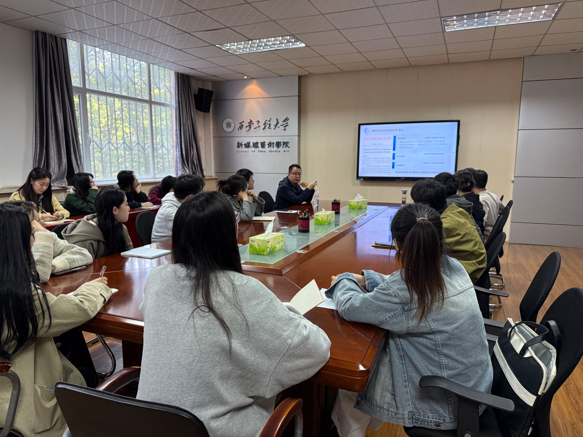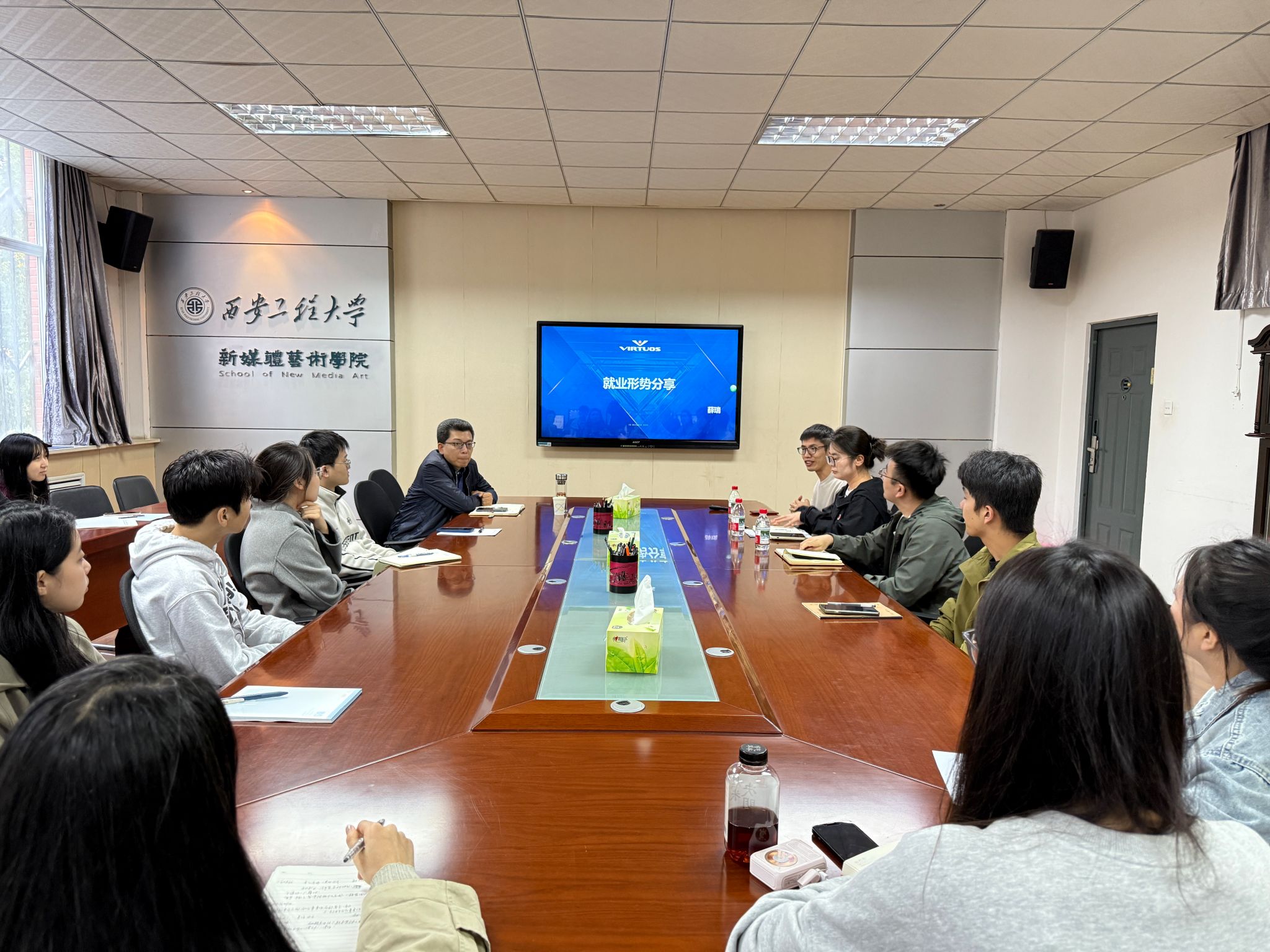 为切实做好2026届毕业生就业服务工作,帮助毕业生精准把握就业形势、明晰就业政策,树立科学就业观与择业观,10月15日下午,星辰影院 本科毕业生就业动员会在8号教学楼326会议室召开,学院党委副书记、就业辅导员、毕业班辅导员、2026届毕业班班干部参会。本次会议特别邀请到招生就业工作处高远、维塔士校园招聘经理薛瑞,为毕业生就业指导提供专业支持。