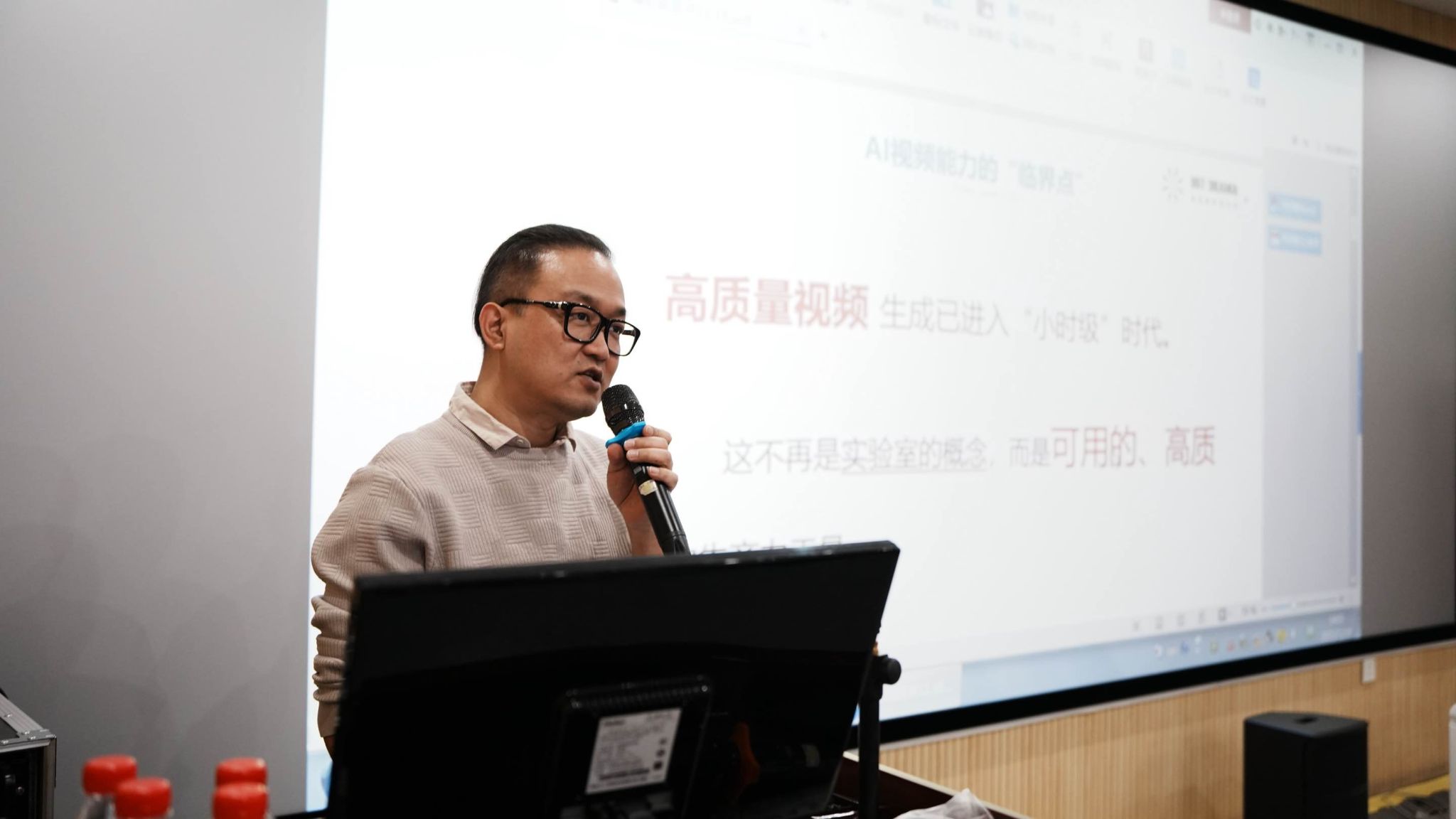 讲座聚焦于AIGC技术在影视创作中的前沿动态与行业变革。王天海先生围绕“AIGC技术已至临近点”展开分享。他指出,当前AI视频生成能力已迈入“小时级”的高质量生产力时代,并不再局限于实验室模型的阶段。他通过分析各大AI模型的快速发展,指出技术进步不仅提升了影视行业的制作效率,也推动导演、编剧等创意人才的审美、叙事与创意能力成为行业价值的核心,促使产业资源进一步向优质内容创作集中。