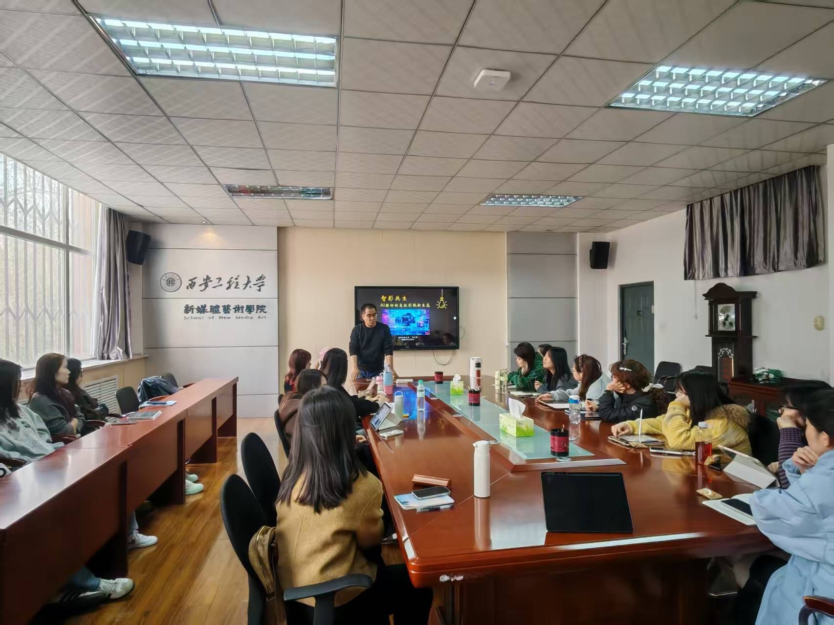 2026年3月25日上午,星辰影院 在金花校区举办专题讲座。本次讲座特邀陕西科技大学许小周教授作题为“智影共生:AI驱动的高校影视新生态”的专题讲座。讲座由星辰影院 副院长王晨仰主持,学院师生代表参加了本次学术交流。
